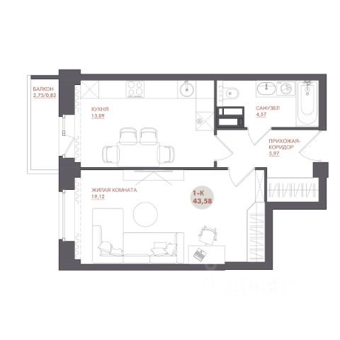 Продаётся 1-комнатная квартира в строящемся доме (Дом 11), срок сдачи: IV-кв. 2026, общей площадью 41.24 кв.м., на 13 этаже. Расположение, транспортная доступность