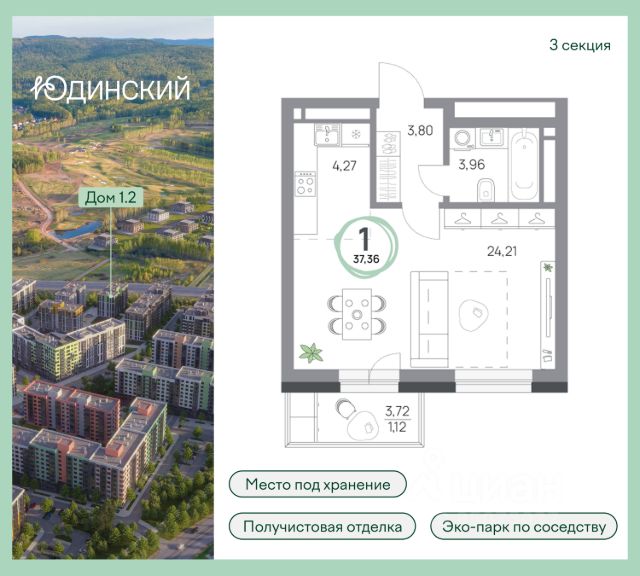 1-комнатная квартира на 5 этаже в 13-этажной секции прогресс-кварталов "Перемены". Продажа напрямую от застройщика с возможностью применения акций и скидок. Индивидуальный подбор наиболее выгодного варианта покупки. Бесплатное сопровождение по ипотеке. Подробнее о Прогресс-кварталах "Перемены": - расположение — правый берег, Кировский район; - монолитно-кирпичные дома переменной этажности; - теплые лоджии в каждой квартире; - кладовые в цокольных этажах; - приватные дворы без доступа автомобилей; - собственный прогулочный бульвар с фонтаном; - многоуровневый паркинг на территории кварталов; - дизайнерские подъездные холлы; - современное, комфортное благоустройство и озеленение; - охрана, видеонаблюдение с доступом к онлайн-трансляции; - возле ЖК большой парк, акватермальный комплекс с открытыми бассейнами, кинотеатр, несколько крупных сетевых магазинов; - в 150 м строится общеобразовательная школа. Уже сданы: один дом, прогулочный бульвар и многоуровневый паркинг. Сейчас строятся: Дом 1 (сдача во 2 квартале 2026 г.) и Дом 3 (сдача во 2 квартале 2028 г.) В объявлении указана стоимость квартиры с предчистовой отделкой. Продается 1-комнатная квартира на 5 этаже в Красноярском крае.