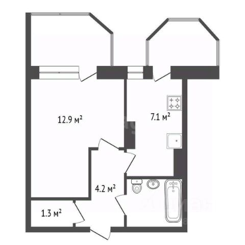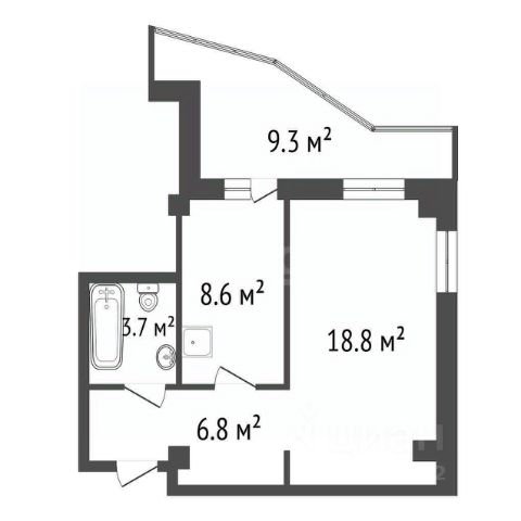 Площадь - 53,3 кв. м