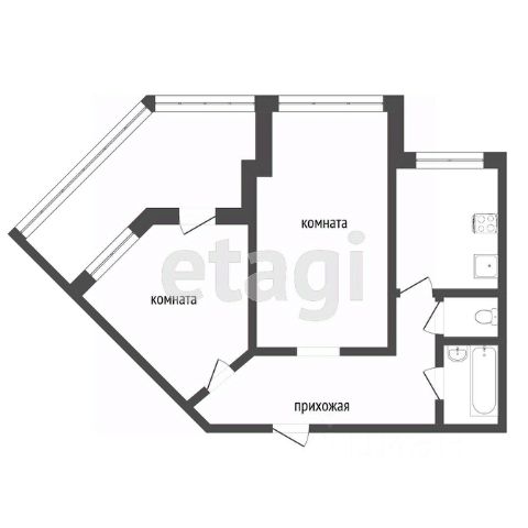 Квартира включает две спальни, кухню-гостиную, 2 санузла (ванная и душевая комнаты), балкон и большая лоджия. На полу австрийская ПВХ-плитка.