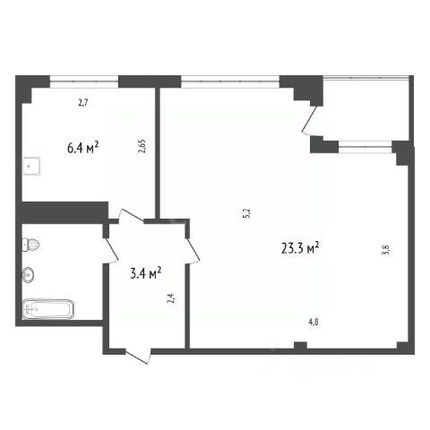 Квартира площадью 45,8 кв. м