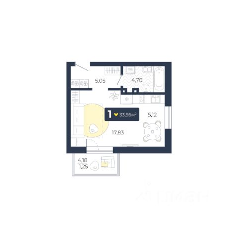 • ✅ Минимальная площадь: 33,9 м²