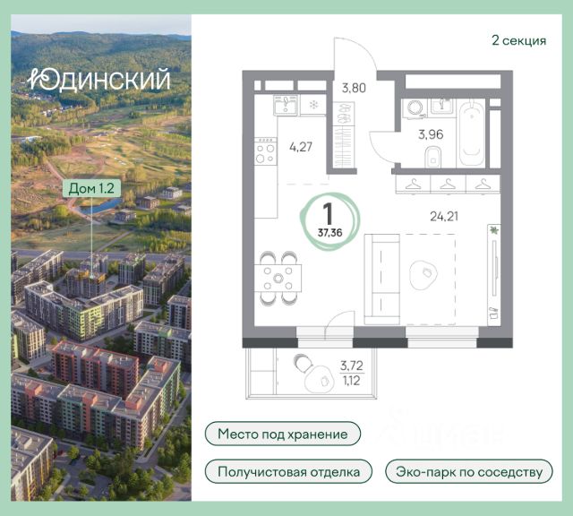 Продаётся 1-комнатная квартира в строящемся доме (Дом 12), срок сдачи: IV-кв. 2027, общей площадью 25.43 кв.м., на 17 этаже. Расположение, транспортная доступность