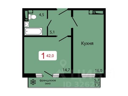 Продаётся 1-комнатная квартира в строящемся доме (Дом 13А), срок сдачи: II-кв. 2026, общей площадью 41.65 кв.м., на 17 этаже. Расположение, транспортная доступность