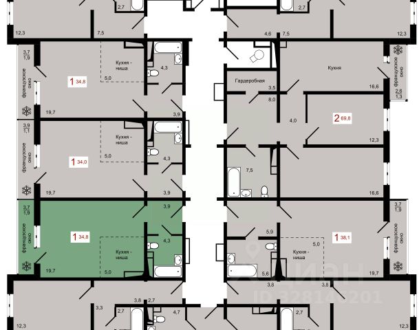При продаже покупателю остается кухонный гарнитур, встроенный шкаф в комнате.