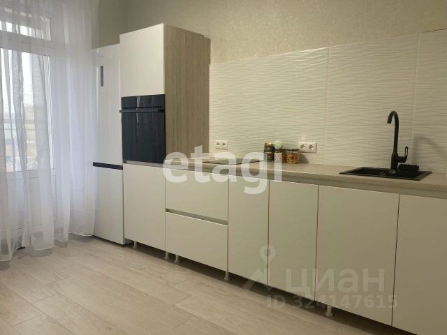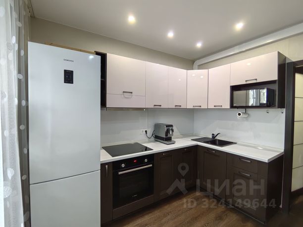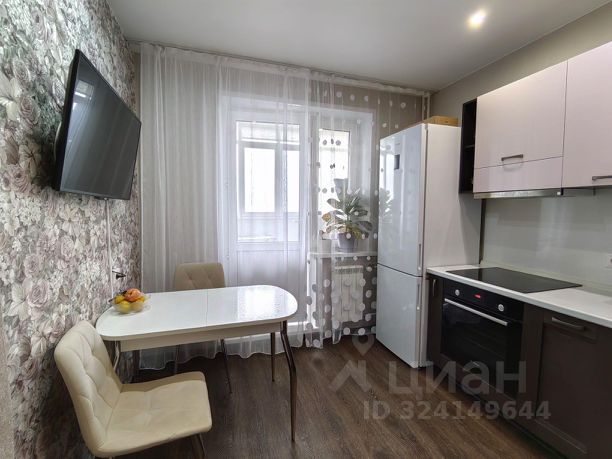 На кухне, выполненной на заказ, вас ждет современная техника: индукционная варочная панель, встроенный духовой шкаф и стиральная машина, а также высокий новый холодильник Hisense. Кухонный гарнитур дополнен фартуком из высококачественной плитки и выходом на большой балкон, где можно наслаждаться утренним кофе или вечерними закатами.