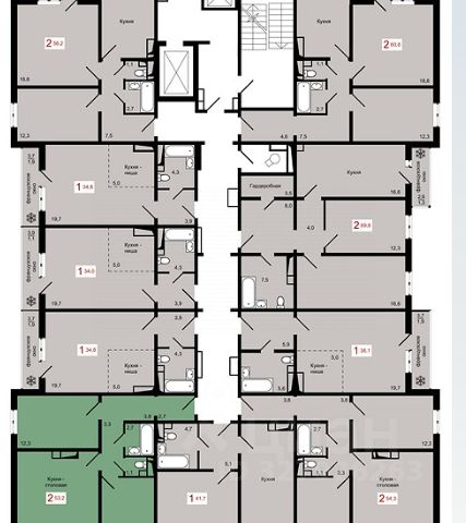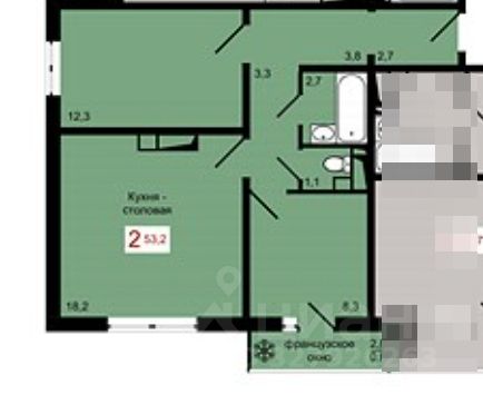 В квартире остаётся кухонный гарнитур, плита, встроенные шкафы.
