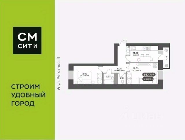 • ✅ Минимальная площадь: 58 м²