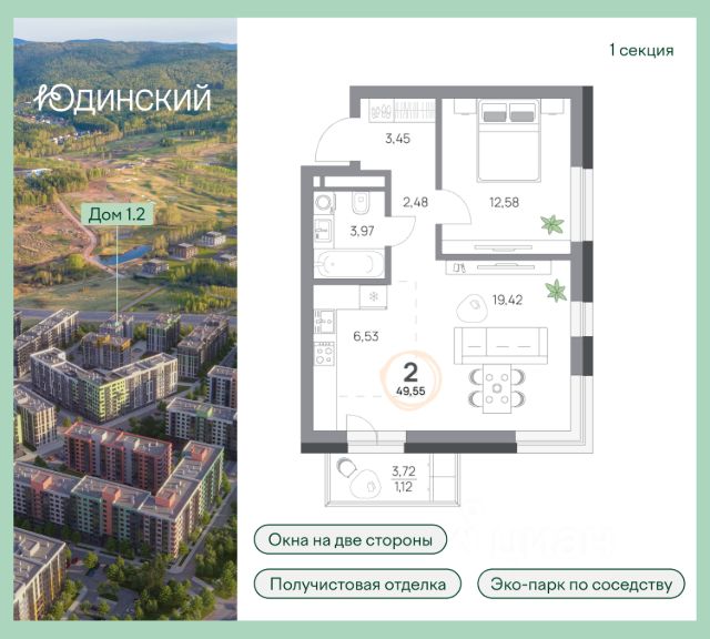 Продаётся 2-комнатная квартира в сданном доме (Лесопарковая, 43 (Дом 1 Корпус 1, Корпус 2)), срок сдачи: III-кв. 2024, общей площадью 42.2 кв.м., на 3 этаже. Жилой комплекс "Серебряный" по праву носит свое название. Он укроет новоселов от городской суеты и подарит долгожданный глоток чистого воздуха. Проживание в экологически чистом районе с развитой инфраструктурой не только популярный во всем мире тренд, но и осознанное стремление отдалиться от шумного сердца мегаполиса и погрузиться в атмосферу спокойствия.