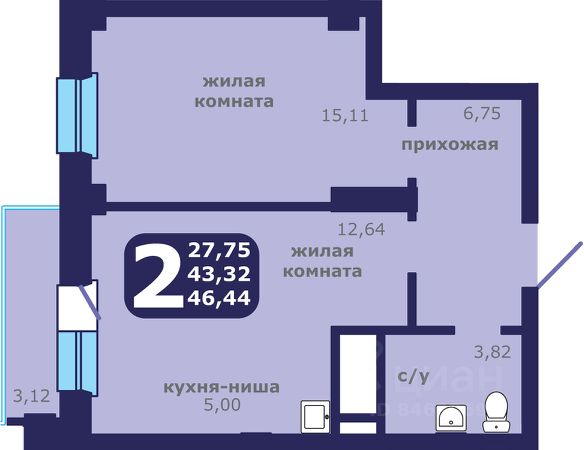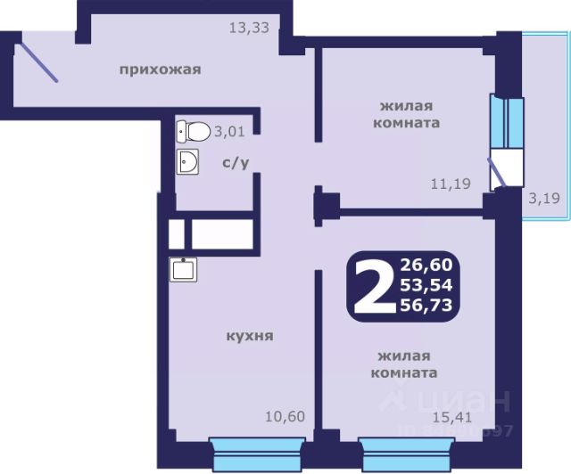 • ✓ В базе Циан 5 2-комнатных квартир на 11 этаже в районе Ленинский в городе Красноярск