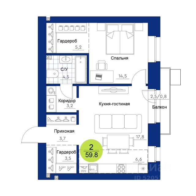 Продаётся 2-комнатная квартира в строящемся доме (Дом 13А), срок сдачи: II-кв. 2026, общей площадью 58.66 кв.м., на 12 этаже. Расположение, транспортная доступность