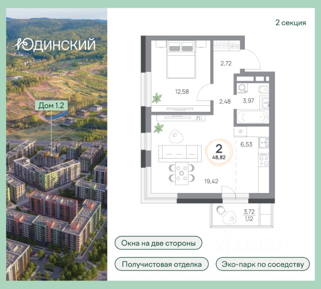 Продаётся 2-комнатная квартира в строящемся доме (Дом 12в), срок сдачи: IV-кв. 2027, общей площадью 59.24 кв.м., на 5 этаже. Расположение, транспортная доступность