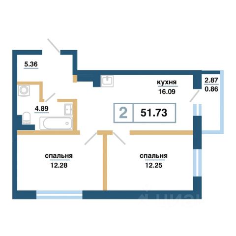 Продаётся 2-комнатная квартира в строящемся доме (Дом 12в), срок сдачи: IV-кв. 2027, общей площадью 52.84 кв.м., на 7 этаже. Расположение, транспортная доступность