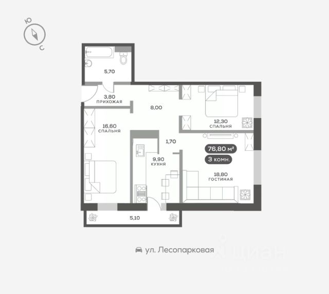 Продаётся 2-комнатная квартира в строящемся доме (Дом 11), срок сдачи: IV-кв. 2026, общей площадью 55.76 кв.м., на 16 этаже. Расположение, транспортная доступность