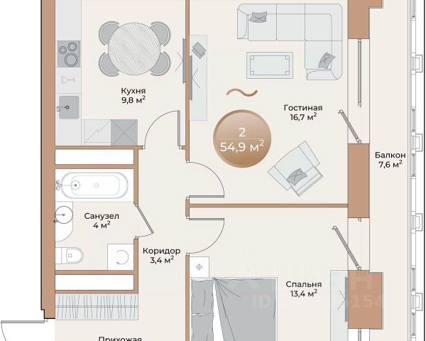 • ✅ Минимальная площадь: 36,8 м²