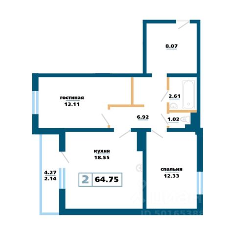 Продаётся 2-комнатная квартира в строящемся доме (Дом 12), срок сдачи: IV-кв. 2027, общей площадью 64.75 кв.м., на 9 этаже. Расположение, транспортная доступность