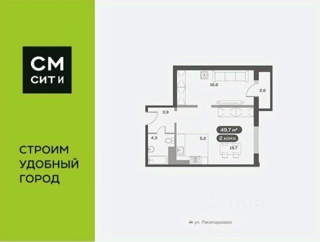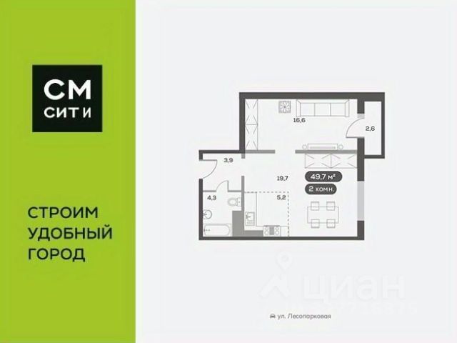 Продаётся 2-комнатная квартира в строящемся доме (Дом 11), срок сдачи: IV-кв. 2026, общей площадью 55.76 кв.м., на 9 этаже. Расположение, транспортная доступность
