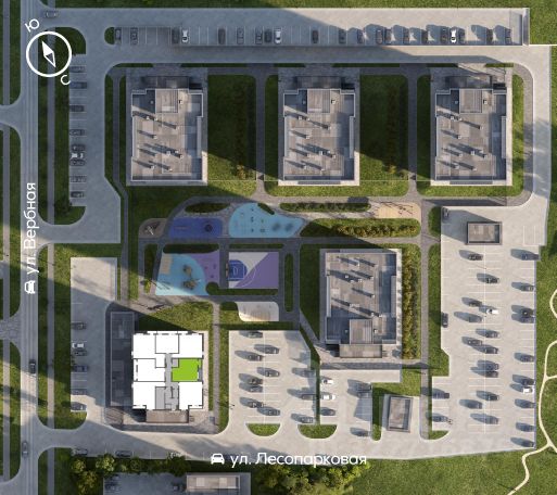 Экологическая обстановка в месте расположения квартала хорошая. Комплекс находится на окраине города, поблизости от пригородных зон, лесов и озер, вдали от промышленных предприятий, на некотором расстоянии от крупных автотрасс.