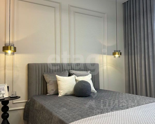 В квартире заливные полы, положен ламинат, в ванной и кухне антивандальный кварц-венил, на кухне на стенах декоративная штукатурка с элементами деревянной рейки, площадь кухни увеличена за счёт большой утеплённый лоджии с тёплыми электро полами и качественными стеклопакетами. В гостиной свежий теневой натяжной потолок с подсветкой, в спальне ремонт делали полгода назад, актуальный теневой потолок с подсветкой над гардиной.