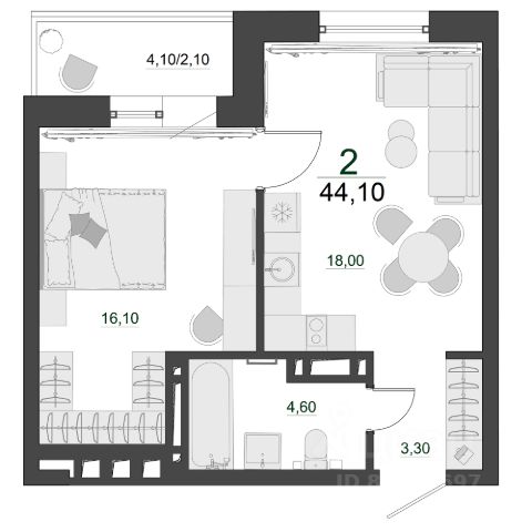 Продаётся 2-комнатная квартира в строящемся доме (Дом 11), срок сдачи: IV-кв. 2026, общей площадью 56.87 кв.м., на 1 этаже. Расположение, транспортная доступность