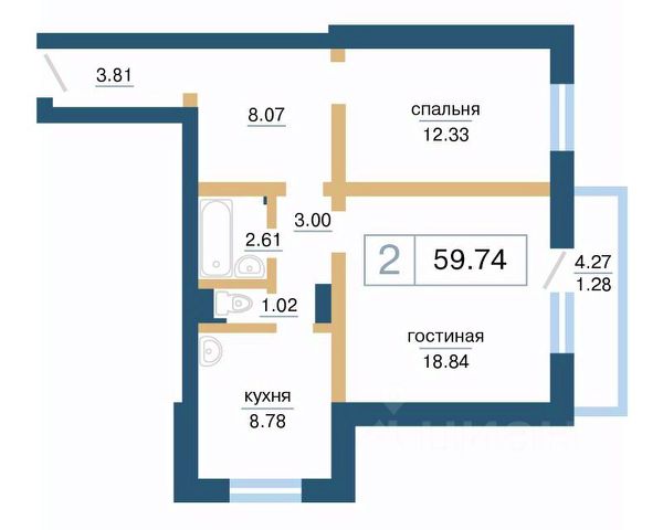 Продаётся 2-комнатная квартира в строящемся доме (Дом 11), срок сдачи: IV-кв. 2026, общей площадью 56.87 кв.м., на 1 этаже. Расположение, транспортная доступность