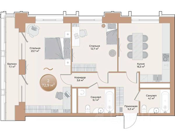 Помимо "Нанжуль-Солнечного" на счету компании Продам 2-комнатную квартиру от застройщика в районе Советский в городе Красноярск.