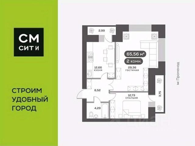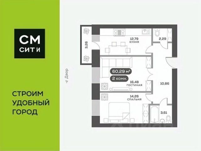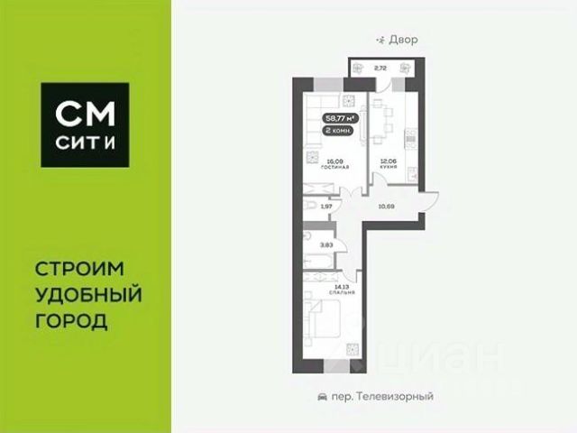 Продаётся 2-комнатная квартира в строящемся доме (Дом 12), срок сдачи: IV-кв. 2027, общей площадью 56.6 кв.м., на 15 этаже. Расположение, транспортная доступность