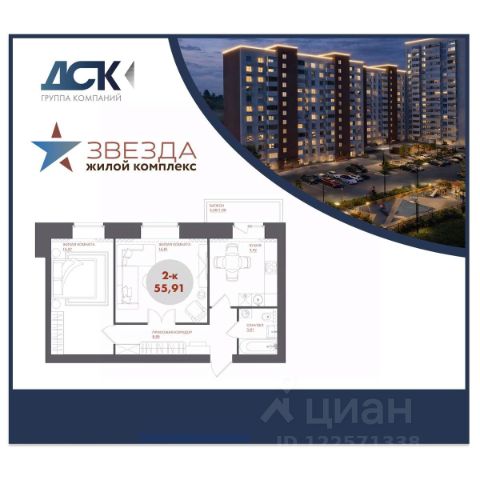 Жилой комплекс "Звезда" - новый формат жизни в Ленинском районе. Район отличается сложившейся инфраструктурой. Рядом с будущим жилым комплексом "Звезда" расположен большой парк с одноименным названием. Развита транспортная и дорожная сети. Есть школа, бассейн, несколько детских садов, взрослая и детская поликлиники, известные во всём городе торговые центры. Монолитно-кирпичный дом на ул. 26 Бакинских Комиссаров. - Переменная этажность - от 12 до 17 - Разные площади квартир - от 31 до 78 м² - Класс жилья стандарт - Коммерческие помещения на первых этажах - Закрытый двор Продам 2-комнатную квартиру с евроремонтом в Красноярском крае.
