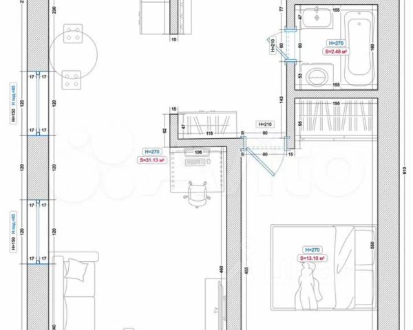 Высокие потолки 2.9м.