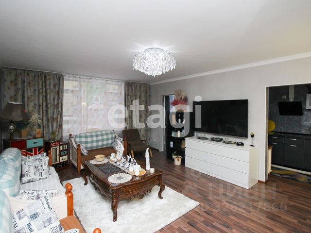 Кухня-гостиная с панорамными окнами (вид на парк 400т-летия, закаты, МВДЦ Сибирь, Взлетку), мини-гостиная с ТВ зоной и полноценным диваном. Отдельно-стоящий остров (в него встроены ПММ, СМА, системы хранения, каменная столешница). Кухонный гарнитур укомплектован всей необходимой техникой. Есть кондиционер.