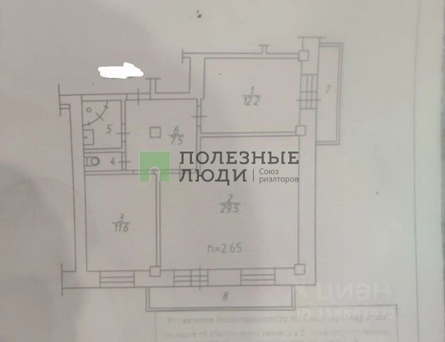 Высокие потолки 2.9м.