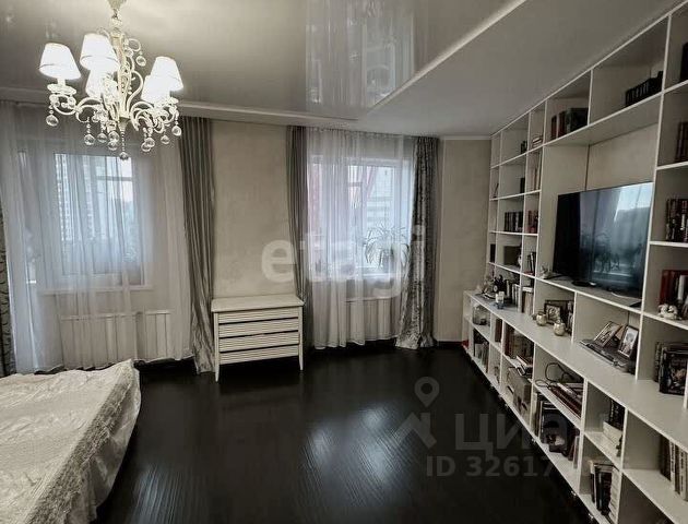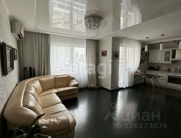 Кухня-гостиная с панорамными окнами (вид на парк 400т-летия, закаты, МВДЦ Сибирь, Взлетку), мини-гостиная с ТВ зоной и полноценным диваном. Отдельно-стоящий остров (в него встроены ПММ, СМА, системы хранения, каменная столешница). Кухонный гарнитур укомплектован всей необходимой техникой. Есть кондиционер.