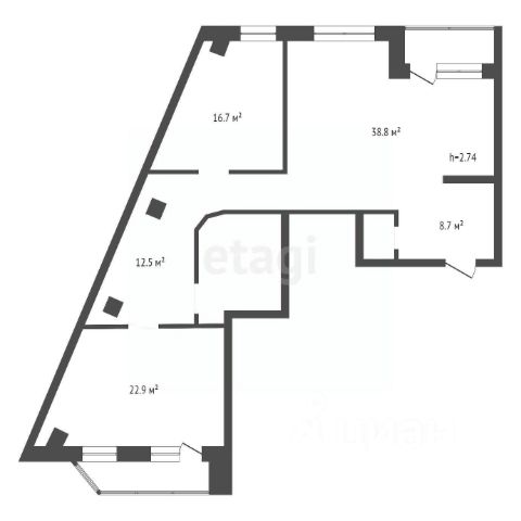 Высокие потолки 2.9м.