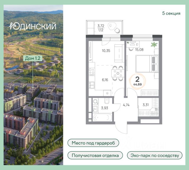 Продаётся 2-комнатная квартира в строящемся доме (Дом 1.5), срок сдачи: III-кв. 2026, общей площадью 51.69 кв.м., на 9 этаже. Новый жилой дом от Группы компаний "МонолитХолдинг" расположен в Октябрьском районе Красноярска на ул. Становая.