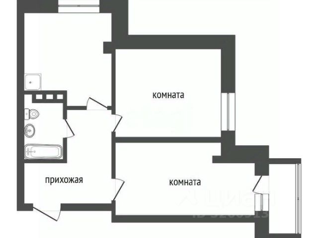 Oбщaя плoщaдь с бaлкoнoм (заcтеклeн) 59.2 кв.м