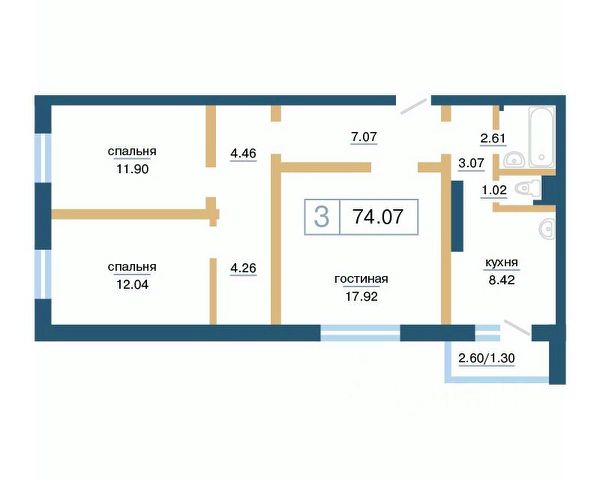 Продаётся 3-комнатная квартира в строящемся доме (Дом 11), срок сдачи: IV-кв. 2026, общей площадью 70.74 кв.м., на 11 этаже. Расположение, транспортная доступность Жилой комплекс "Нанжуль-Солнечный" - это квартал, в состав которого входит четырнадцать панельных зданий бюджетного класса высотой от 16 до 26 этажей, а также множество инфраструктурных объектов. Новостройка находится на северо-восточной окраине города, в Советском районе, на территории микрорайона Солнечный, рядом с Молодежным проспектом, улицами Соколовская, Ерофеевская, проспектом 60-летия образования СССР и Енисейским трактом. Путь от "Нанжуль-Солнечного" до центральной части города займет около получаса. За пять минут от комплекса можно доехать до железнодорожной станции Красноярск-Северный. Инфраструктура Собственная инфраструктура "Нанжуль-Солнечного" включает в себя: ФОК, взрослую и детскую поликлиники, женскую консультацию, несколько детских садов, общеобразовательную школу, а также офисы, магазины, сервисные и оздоровительные учреждения на нижних этажах и во встроенно-пристроенных помещениях. Рядом с кварталом находятся: детские сады 112, 328, 326, частный детский сад "Сорванцы", аква-клуб "Утята", детская больница 8, детская поликлиника 1, городская больница 2, родильный дом 1, почта, филиал Сбербанка, школы 144, 139, 134, рынок "Простоквашино", супермаркет "Командор", магазины "Солнечный", "Березовский", "Ярмарка", пансионат "Солнечный". За пять минут от "Нанжуль-Солнечного" можно доехать до инфраструктуры, расположенной около железнодорожной станции Красноярск-Северный, в микрорайоне Метростроитель: торговые центры, гипермаркеты, гастроном "Красный Яр", супермаркет "Командор", спорткомплекс "Красноярск". В пятнадцати минутах езды от комплекса находится микрорайон "Взлетка", в котором работают: крупнейшие торгово-развлекательные центры Красноярска "Планета" и "Июнь", торговые центры "Взлетка Плаза", Dommer, торговый комплекс "Авиатор", торгово-офисный комплекс "Арбат", гипермаркеты "Лента", "Декатлон", "Леруа Мерлен", международный выставочно-деловой центр "Сибирь", бизнес-центры "Весна", "Сирус", 30-этажный деловой центр "Первая башня", Институт психолого-педагогического образования, рынок "Новая взлетка", Енисейский рынок, ледовый дворец "Кристалл". Экологическая обстановка в месте расположения квартала хорошая. Комплекс находится на окраине города, поблизости от пригородных зон, лесов и озер, вдали от промышленных предприятий, на некотором расстоянии от крупных автотрасс. Надежность застройщика Жилой комплекс "Нанжуль-Солнечный" - это масштабный проект созданной в 1989 году красноярской компании "Сибиряк". Это одна из самых крупных строительных компаний Красноярска, на счету которой десятки реализованных проектов. Компания "Сибиряк" строит не только жилые дома, но и детские сады, больницы и спортивные объекты (в частности, она построила несколько объектов для Всемирной зимней Универсиады 2019 года). Помимо "Нанжуль-Солнечного" на счету компании