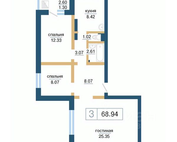 Продаётся 3-комнатная квартира в строящемся доме (Дом 12), срок сдачи: IV-кв. 2027, общей площадью 71.56 кв.м., на 6 этаже. Расположение, транспортная доступность