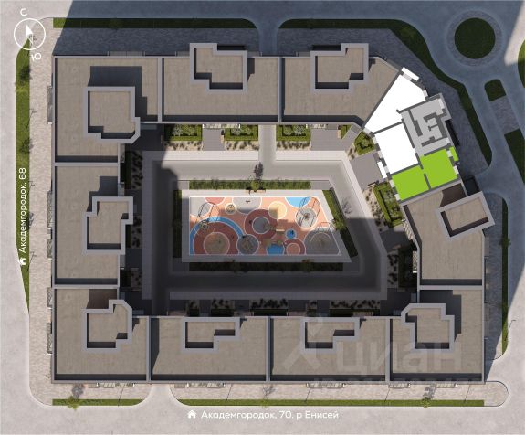 Новостройка находится на северо-восточной окраине города, в Советском районе, на территории микрорайона Солнечный, рядом с Молодежным проспектом, улицами Соколовская, Ерофеевская, проспектом 60-летия образования СССР и Енисейским трактом.