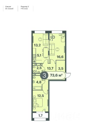 Продаётся 3-комнатная квартира в строящемся доме (Дом 12), срок сдачи: IV-кв. 2027, общей площадью 71.56 кв.м., на 14 этаже. Расположение, транспортная доступность