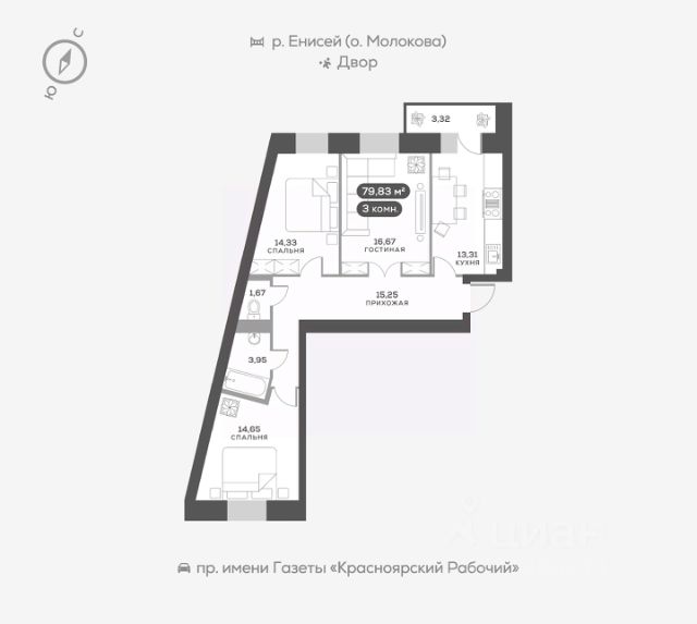 Ремонт в квартире выполнен в светлых тонах, что дает еще больше света и пространства. Функциональная кухня расположена в углу, позволит любой хозяйке чувствовать себя комфортно. Санузел совмещен, частично в кафеле, остальное окрашено, что дает возможность изменить цветовую гамму при желании изменений). Квартира оснащена просторной лоджией с видом на Енисей и уютный двор дома.