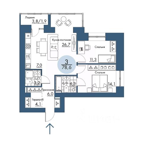 Продаётся 3-комнатная квартира в строящемся доме (Корпус 3), срок сдачи: IV-кв. 2025, общей площадью 78.6 кв.м., на 8 этаже. Новый жилой комплекс от группы строительных компаний "Арбан" расположен по адресу: г. Красноярск, по ул. Складская.