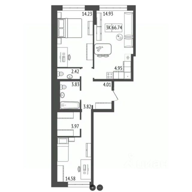 Продаётся 3-комнатная квартира в строящемся доме (Премьер парк), срок сдачи: III-кв. 2029, общей площадью 66.74 кв.м., на 8 этаже. Жилой комплекс "Премьер Парк" расположен в живописном микрорайоне Тихие Зори города Красноярска, неподалеку от реки Енисей и знаменитого железнодорожного моста, удостоенного гран-при наравне с Эйфелевой башней. Вблизи комплекса находятся такие достопримечательности, как фан-парк "Бобровый Лог", заповедник "Столбы" и река Базаиха с её живописной поймой. Чтобы провести время на природе понадобиться потратить всего несколько минут на дорогу. Преимущества близкого расположения к заповеднику "Столбы" и фан-парку "Бобровый Лог" делают "Премьер Парк" идеальным выбором для тех, кто ценит активный и здоровый образ жизни, природу и удобства современной инфраструктуры. Жители могут легко сочетать городской комфорт с активным отдыхом на природе, наслаждаясь лучшими из обоих миров. Развитая транспортная инфраструктура позволяет добраться до центра города всего за 10 минут. Кроме того, рядом расположен спортивно-зрелищный центр "Платинум Арена", принимающий большое количество развлекательных и спортивных мероприятий различного масштаба. Около 2000 тысяч квадратных метров займёт ритейл с нежилыми помещениями , в которых разместяться магазины, кафе, рестораны, кофейни.Что избавит жителей жилого комплекса от необходимости лишний покидать территорию своего дома. Первая очередь строительства жилого комплекса "Премьер Парк" ознаменует начало создания нового уникального микрорайона с современной архитектурой и особым подходом к комфортному и гармоничному проживанию. Одной из архитектурных особенностей комплекса станет дом, построенный на стилобате, на котором будет размещено благоустройство. Архитектурным акцентом станет арка, соединяющая секции дома между собой. Квартиры с просторными террасами на верхних и первых этажах обеспечат отличное времяпрепровождение для всей семьи, а также будут доступны террасы общего пользования, которые будут располагаться на переходных секциях, 7 этажах. Вообразите себе уютное утро, когда вы выходите на просторную террасу с чашкой горячего кофе. С высоты открывается захватывающий вид на могущественный Енисей, железнодорожный мост и живописные окрестности. Вечером терраса становится идеальным местом для отдыха с семьей или друзьями. Здесь можно наслаждаться живописными закатами, которые окрашивают небо в невероятные оттенки оранжевого и розового, создавая атмосферу уюта и спокойствия. Для всех жителей комплекса предусмтрен бесплатный фитнес-зал, что позволит поддерживать здоровый образ жизни и укреплять здоровье, не покидая пределы жилого комплекса. Входные группы ЖК "Премьер парк" два общих входа для жителей всего дома , в которых будут располагаться детские игровые комнаты, зоны отдыха для деловых переговоров и соседких бесед. Дополнительно вход в подъезд предусмотрен в каждой жилой секции, в которых предусмотрены комнаты для хранения велосипедов и колясок. Благодаря подземной парковке, наземн