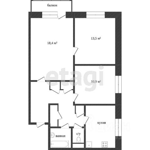 Современная планировка дома (84 серия дома). Общая площадь - 66,2 кв.м., жилая площадь комнат - 42 кв.м., кухня - 21 кв.м. Окна, балконный блок в квартире - ПВХ.