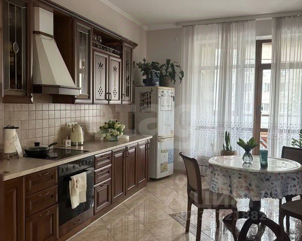 спальни 12.2.+ 14.6 кв.м., вместительная кухня с выходом на застекленный балкон 10.6 кв.м., установлен кондиционер.), остается кухонный гарнитур из красного дерева - производство Италия,