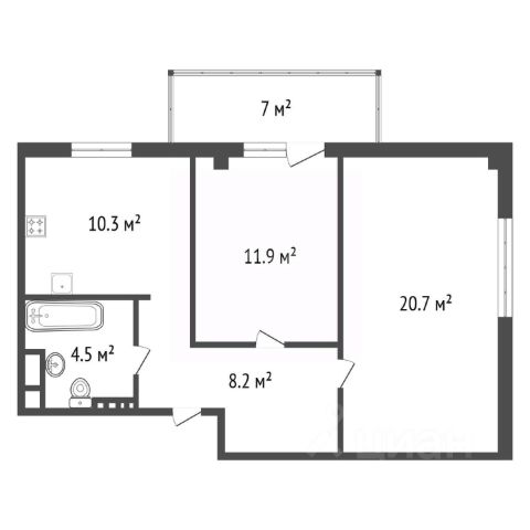 Современная планировка дома (112-серия дома). Общая площадь - 70,2 кв.м., жилая площадь комнат - 43,9 кв.м., кухня - 7,8 кв.м.