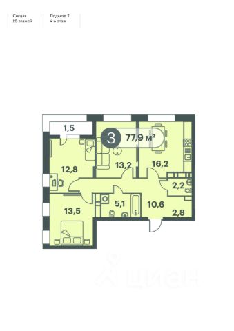 Продаётся 3-комнатная квартира в строящемся доме (Дом 5.1), срок сдачи: I-кв. 2027, общей площадью 89 кв.м., на 7 этаже. Набережная Енисея - одно из самых живописных мест в городе и новом районе Красноярск-Сити. Здесь, вдоль улицы Дубровинского, расположен жилой комплекс "Суриков". "Суриков" формируют три 25-этажных дома с лаконичными выразительными фасадами. Огромные витражи будут отражать всю красоту места и растворяться в пространстве. В разноэтажном Красноярск-Сити высотные башни станут ориентиром и заметной доминантой района. Жить в "Сурикове" - значит пользоваться инфраструктурой центра. Рядом набережная Енисея, Центральный парк и Исторический квартал, лучшие театры, музеи и рестораны. А еще престижные гимназии, языковые школы и огромный выбор развивающих центров и детских садов, частных и городских. От входа во двор до квартиры - в "Сурикове" продумана каждая деталь для комфортной жизни в центре большого города. Дома строятся вдоль реки, перед ними нет и не будет других зданий. Вид на Енисей и панораму города останется неизменным. Входные группы оформят дизайнеры: все будет напоминать о гениальном сибирском художнике, в честь которого назван жилой комплекс. Для удобства жителей и гостей в холлах установят скоростные лифты и обустроят зону ожидания. Спуститься к автомобилю можно на лифте, не выходя на улицу. В паркинге поддерживается оптимальный для машин микроклимат, а дворы остаются свободными от транспорта. Двор в "Сурикове" - это место для отдыха всех жителей. На территории сделают воркаут-зону, места отдыха для взрослых и игровые площадки для детей. Большая часть квартир в жилом комплексе видовые, реку и панораму города видно не только с верхних этажей. Продам 3-комнатную квартиру в новостройке в Красноярском крае.