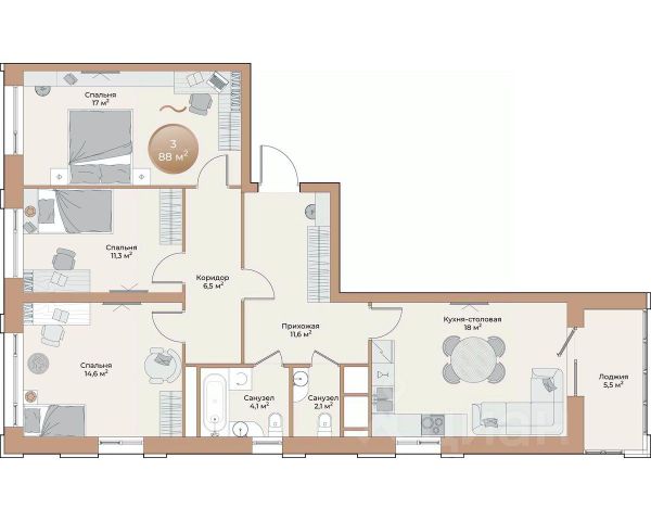 Продаётся 3-комнатная квартира в строящемся доме (Дом 12), срок сдачи: IV-кв. 2027, общей площадью 71.56 кв.м., на 6 этаже. Расположение, транспортная доступность