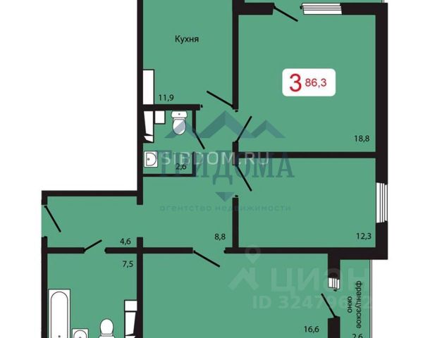 Продаётся 3-комнатная квартира в строящемся доме (Дом 12), срок сдачи: IV-кв. 2027, общей площадью 71.56 кв.м., на 6 этаже. Расположение, транспортная доступность