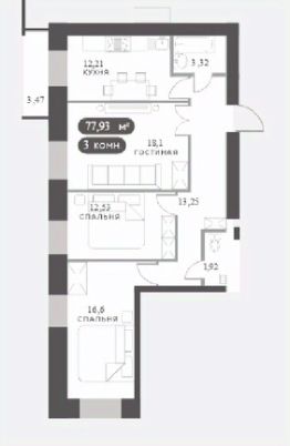 Продаётся 3-комнатная квартира в строящемся доме (Дом 12), срок сдачи: IV-кв. 2027, общей площадью 71.56 кв.м., на 6 этаже. Расположение, транспортная доступность