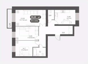 Планировка продумана до мелочей: три отдельные комнаты, кухня с выходом на балкон, два сан.узла, в коридоре глубокая ниша под гардеробную. При желании, можно легко превратить планировку в евро-трёхкомнатную с двумя спальнями и просторной кухней гостиной более 30 кв.м.